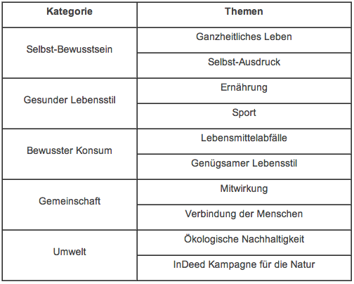 Das allgemeine Thema der Initiative ist Gesundheit in unserem Körper, Geist, in sozialen Netzwerken und im Ökosystem unserer Erde. Unser Ansatz hierzu lautet: Bewusstheit. Jede unserer Handlungen hat eine Auswirkung – für uns, für andere, für die Erde. Bewusstheit ist der Ausgangspunkt für unsere Entscheidungen, was wir kaufen und essen, denken und sagen, akzeptieren oder ablehnen.