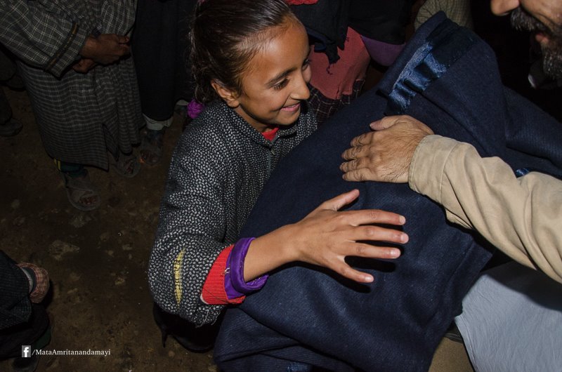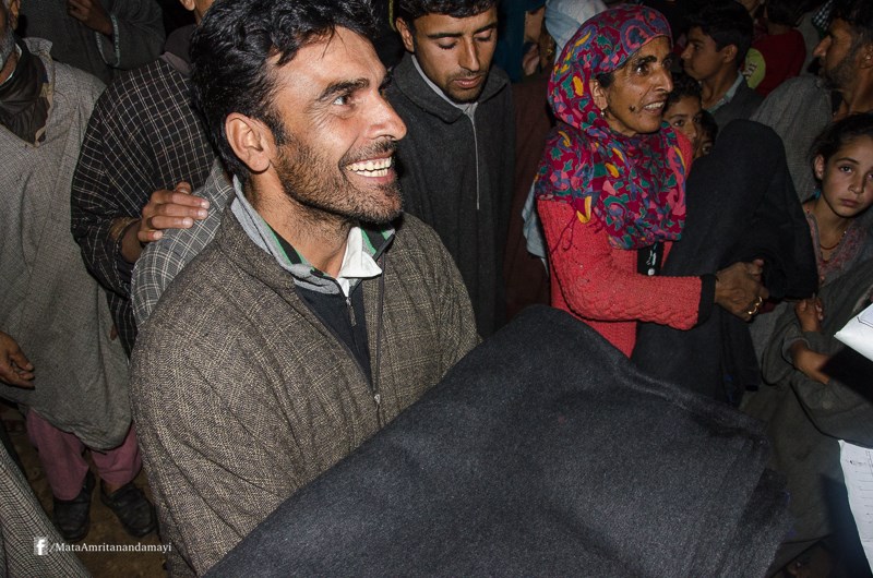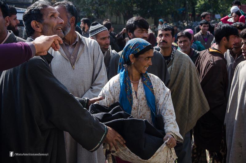 Ein weiteres Team von Embracing the World verteilt warme Decken, denn die Nächte in Kashmir sind sehr kalt und viele Menschen leben im Freien oder in den Ruinen ihrer Häuser.